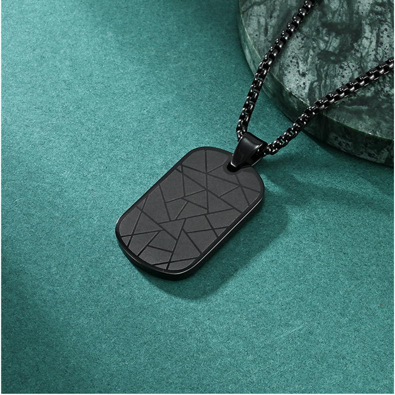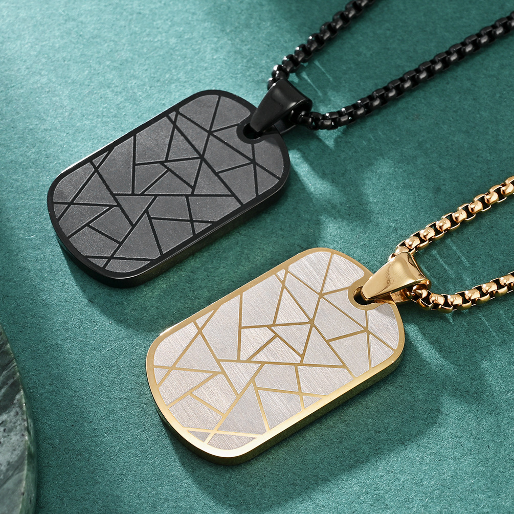 - MODERN DESIGN: Features a contemporary geometric crack pattern on a dog tag style pendant measuring 22mm x 38mm (0.87″ x 1.5″) for a bold, masculine look